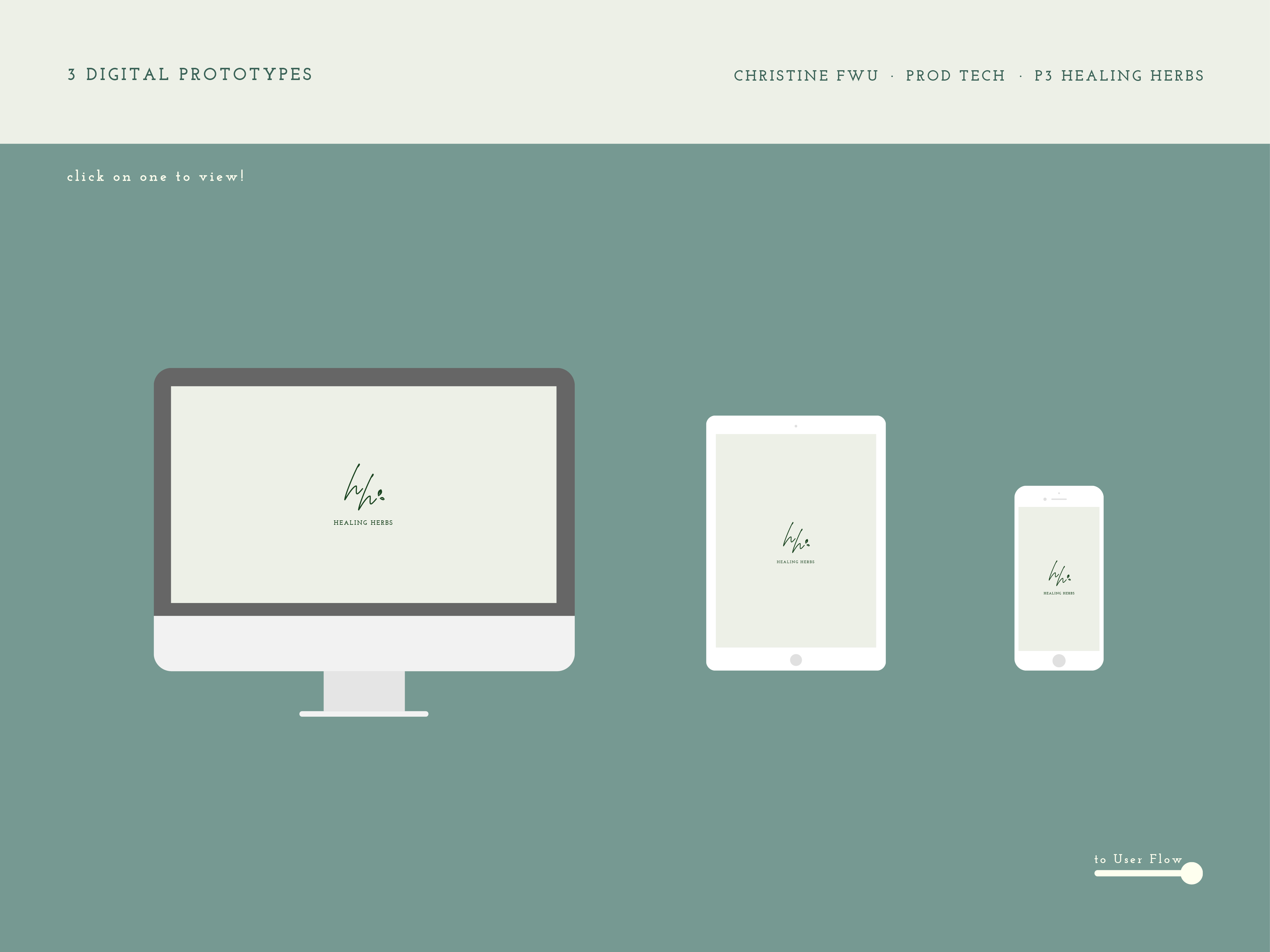 Healing Herbs is a self directed project that consists of a main component (digital prototype) and a secondary component (printed postcards). The digital prototype began with wireframes for the desktop, iPad, and iPhone then moved into screen mockups for each one. Examples of userflow are then shown with the iPhone.